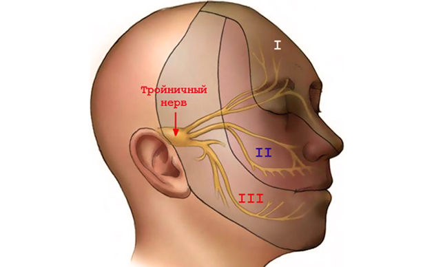 - поражение троичного нерва: лицевая невралгия почти всегда возникает на этом фоне. Ведь троичный нерв несет импульсы во все части нашего лица и распространяется на глазную, верхнечелюстную и нижнечелюстную область. Поражение троичного нерва может возникнуть по множеству причин. Начиная с ведения неправильного образа жизни, возникновения постоянных простуд и стрессов, заканчивая неверно проведенным стоматологическим лечением, непрофессиональной установкой имплантов или травматичным удалением зубов,